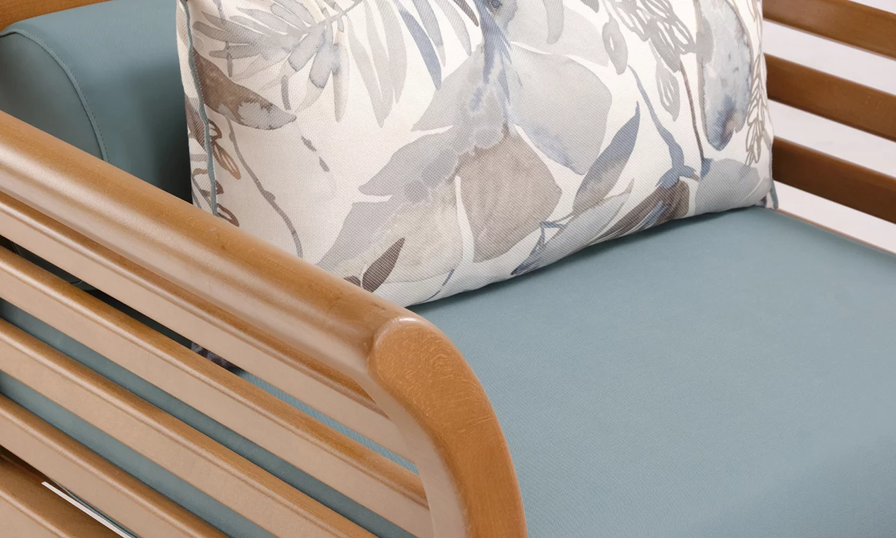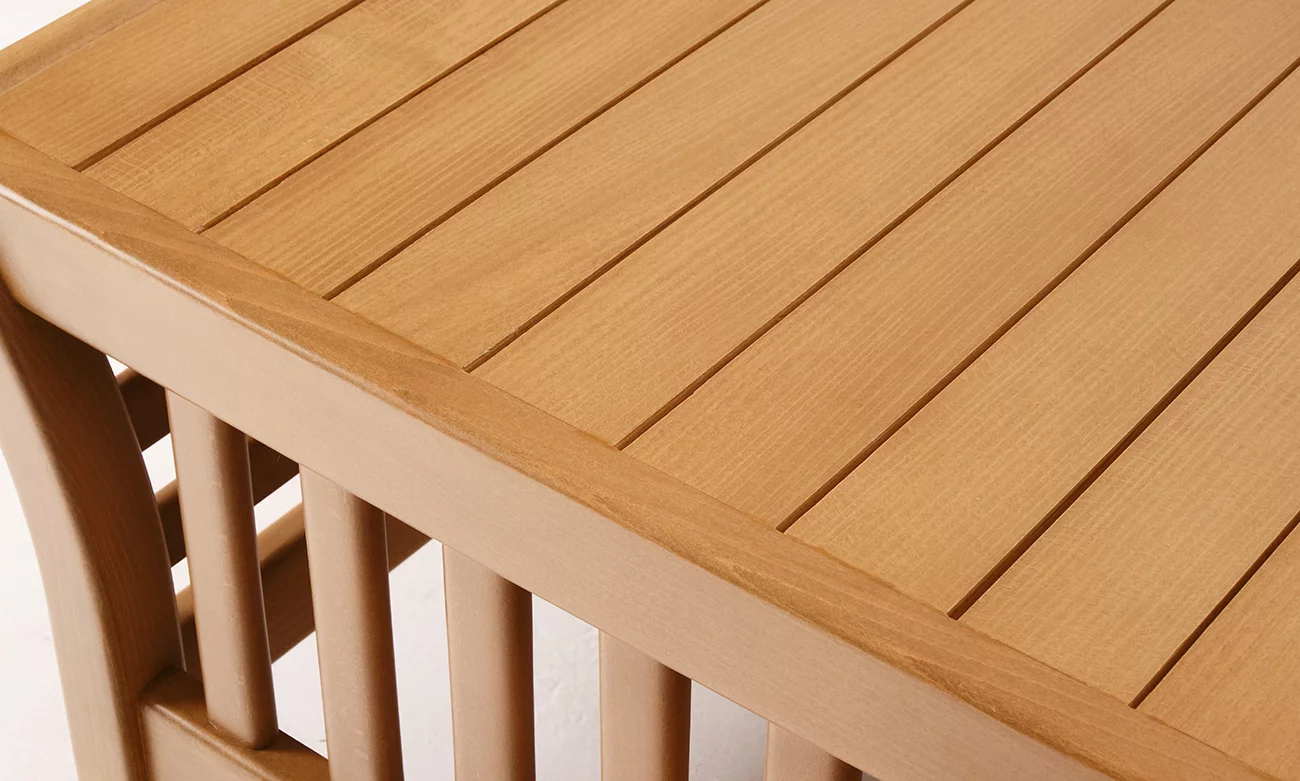 Sa finition au vernis marin assure une protection optimale contre l’humidité tout en mettant en valeur les veines chaleureuses et authentiques du bois. La surface lisse et brillante accentue l’élégance de chaque pièce, en faisant un élément incontournable de votre espace extérieur.