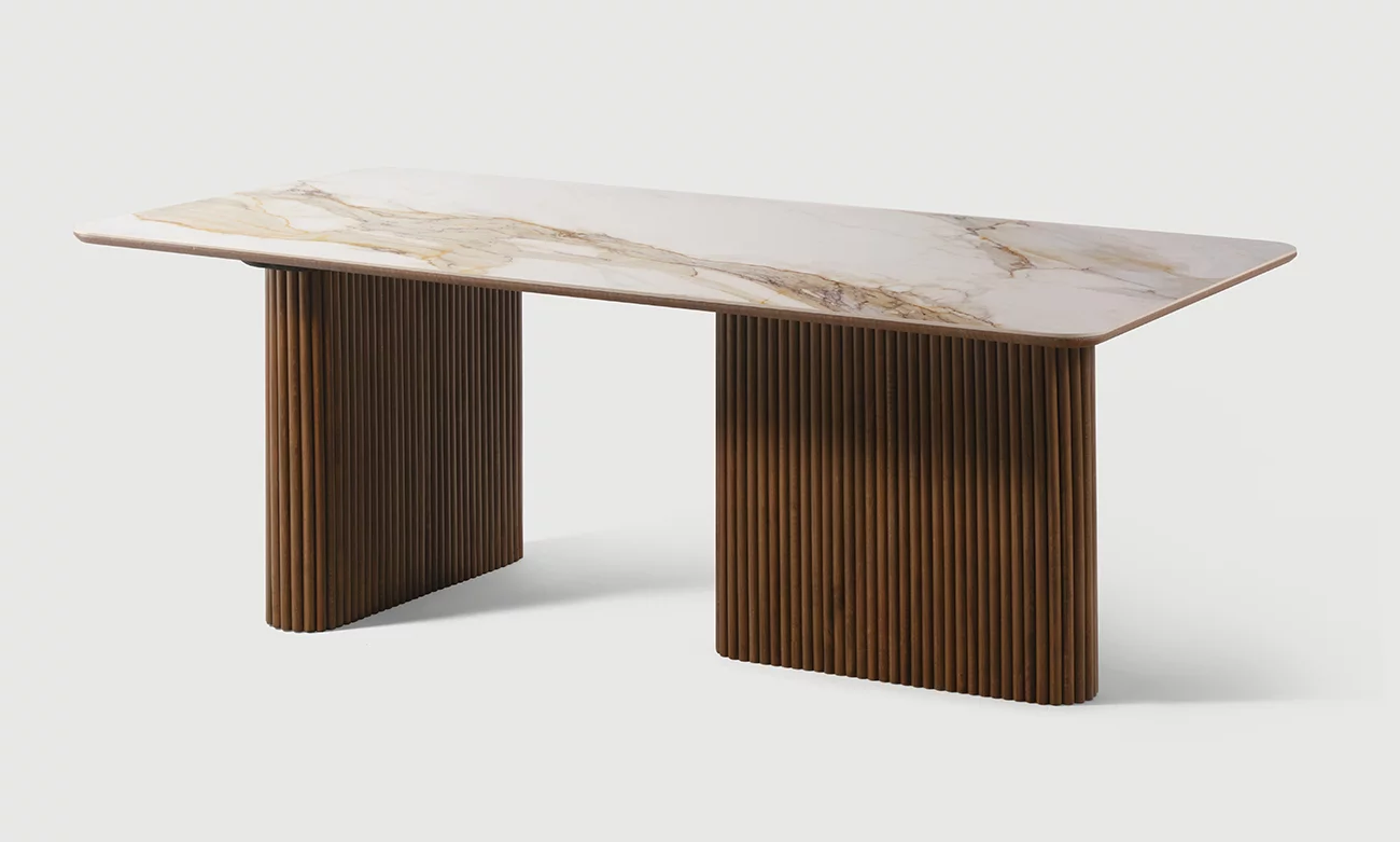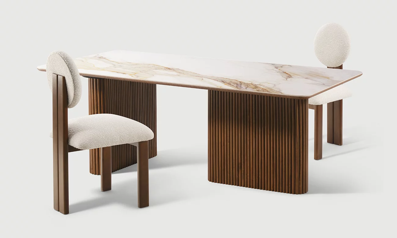La table à manger César est l’incarnation du charme et du raffinement. Avec son plateau en céramique, reconnu pour sa résistance et sa sophistication, et son support en bois plaqué noyer, elle combine harmonieusement modernité et intemporalité. Cette pièce majestueuse transforme chaque repas en une expérience culinaire luxueuse, tout en apportant une touche d’élégance à votre espace de vie.