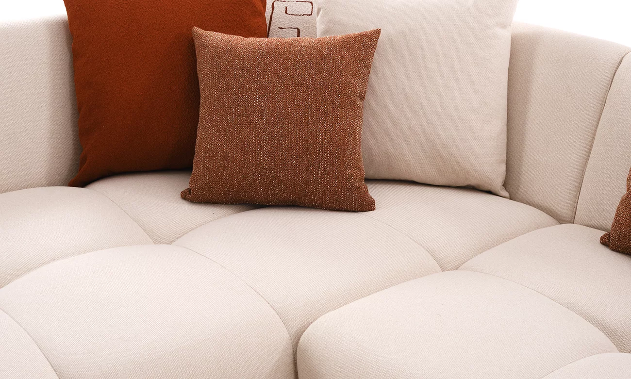 Rehaussez le charme du salon en L Cooper avec des coussins aux motifs géométriques ou dans des teintes apaisantes pour créer une ambiance cosy. Associez-le à une table basse minimaliste et un tapis texturé pour renforcer son allure moderne. Des plantes vertes ou des luminaires design compléteront l’ensemble, apportant une touche de fraîcheur et d’élégance à votre intérieur.