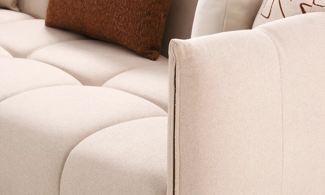 Le salon en L Cooper, signé ErraouiDecor, redéfinit l’équilibre parfait entre robustesse et élégance. Sa structure en bois massif assure une durabilité exceptionnelle, prête à affronter les défis du quotidien. Conçu pour offrir un confort irréprochable, il est doté d’un rembourrage en mousse haute résilience (HR) associé à des ressorts, garantissant un soutien optimal et une assise moelleuse.