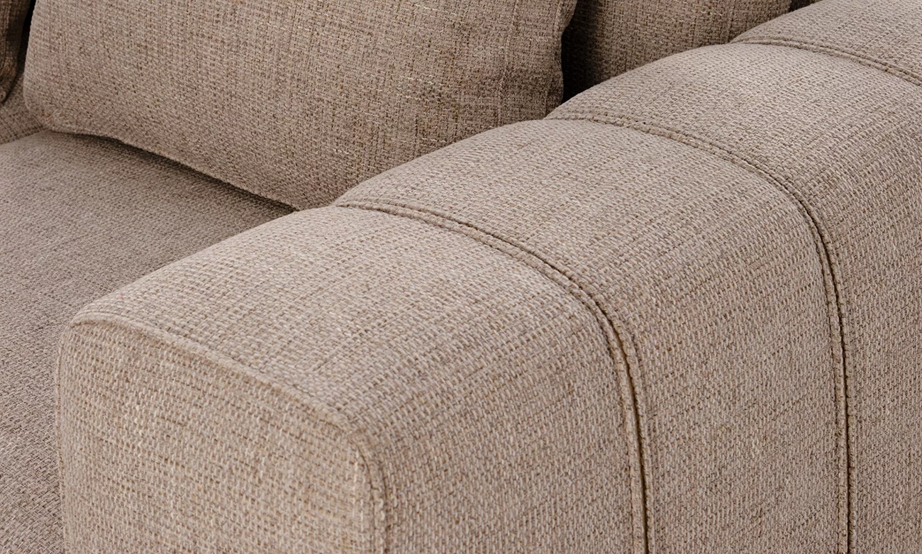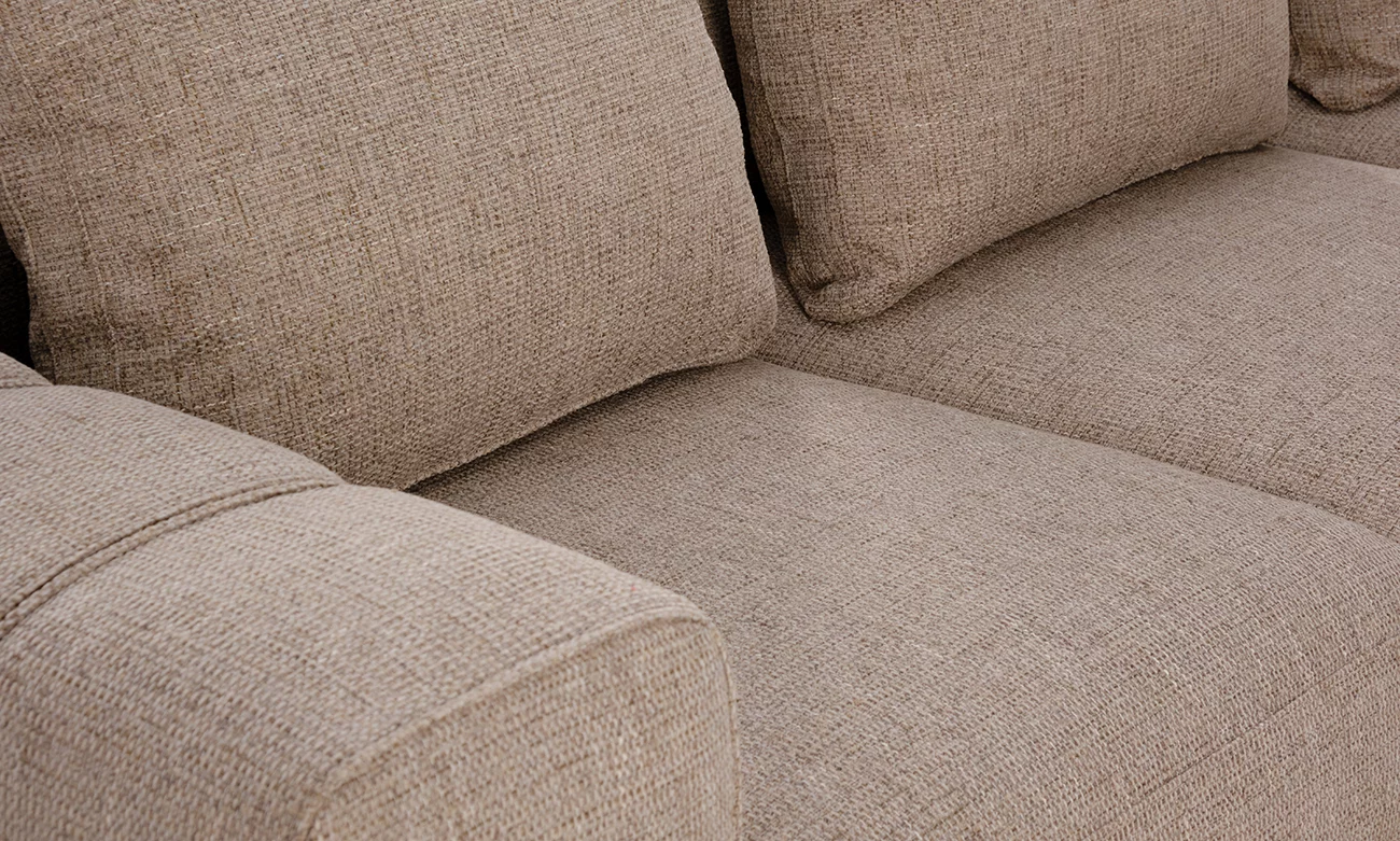 Sa structure en bois massif assure une durabilité remarquable, tandis que les sangles élastiques entrecroisées et le rembourrage en ressorts ensachés, combinés à une mousse HR, garantissent un soutien ergonomique et une assise moelleuse.