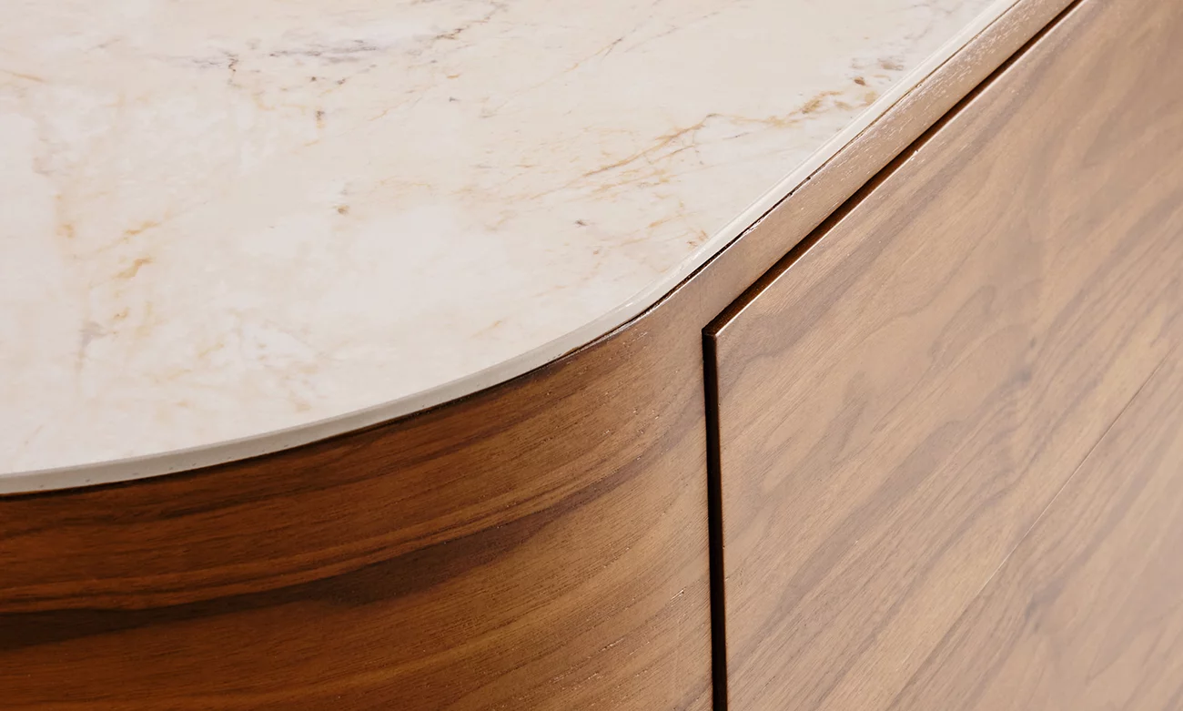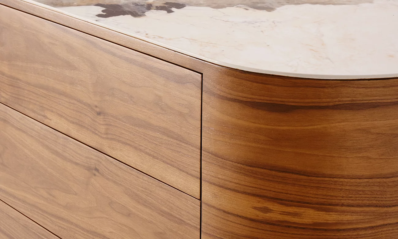 La commode Jade allie harmonieusement raffinement et durabilité, devenant une pièce incontournable pour sublimer votre intérieur. Sa structure en bois plaqué noyer, avec ses veines naturelles et sa finition luxueuse, dégage une esthétique chaleureuse et sophistiquée qui s’adapte à tous les styles de décoration.