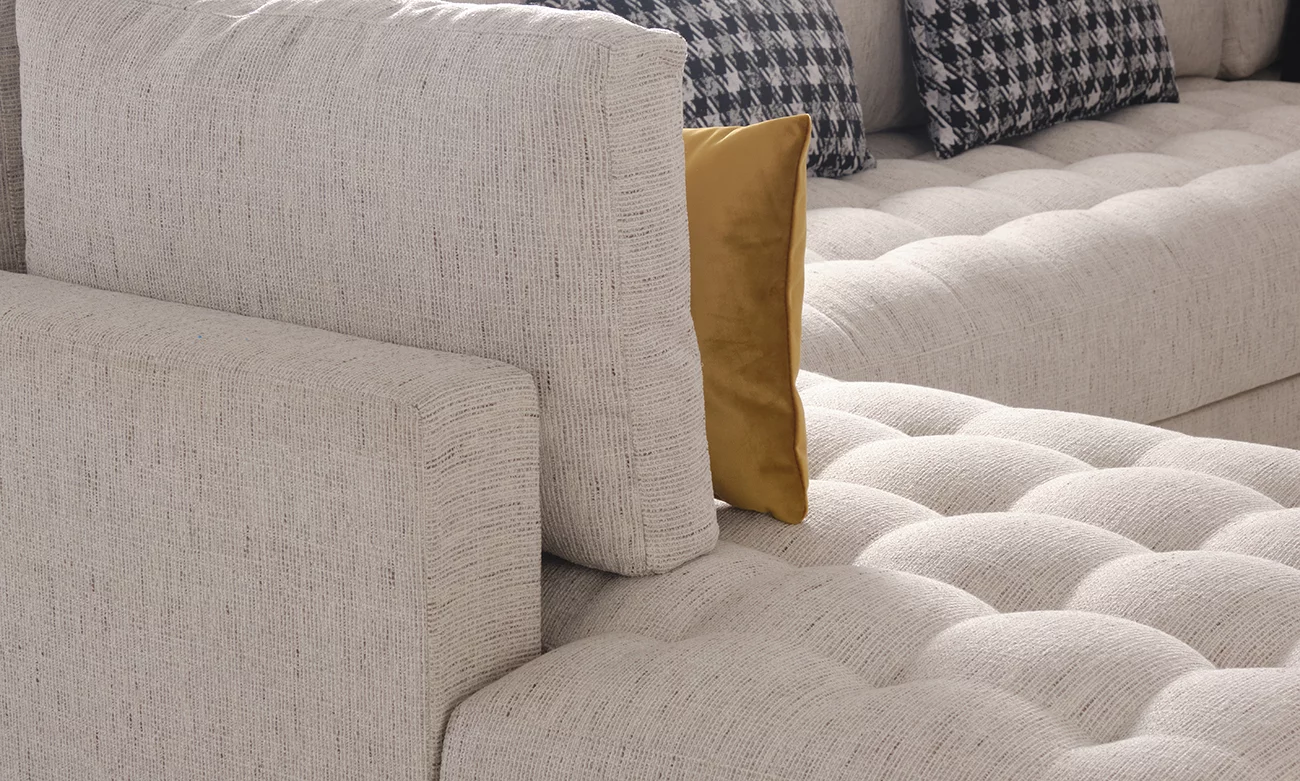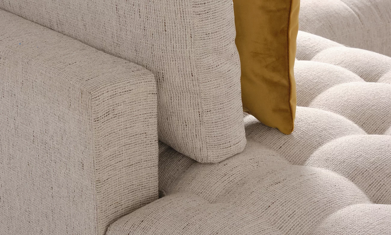 L’Olika U PM d’ErraouiDecor incarne l’équilibre parfait entre confort et élégance. Sa structure robuste en bois massif, soutenue par des sangles élastiques entrecroisées, offre un soutien durable et optimal. Avec un rembourrage à ressorts ensachés et une mousse de densité 33, ce canapé promet une assise enveloppante et résiliente pour vos moments de détente. Son revêtement en toile anti-tâches allie praticité et raffinement, garantissant un salon à l’épreuve du quotidien tout en conservant son allure sophistiquée.