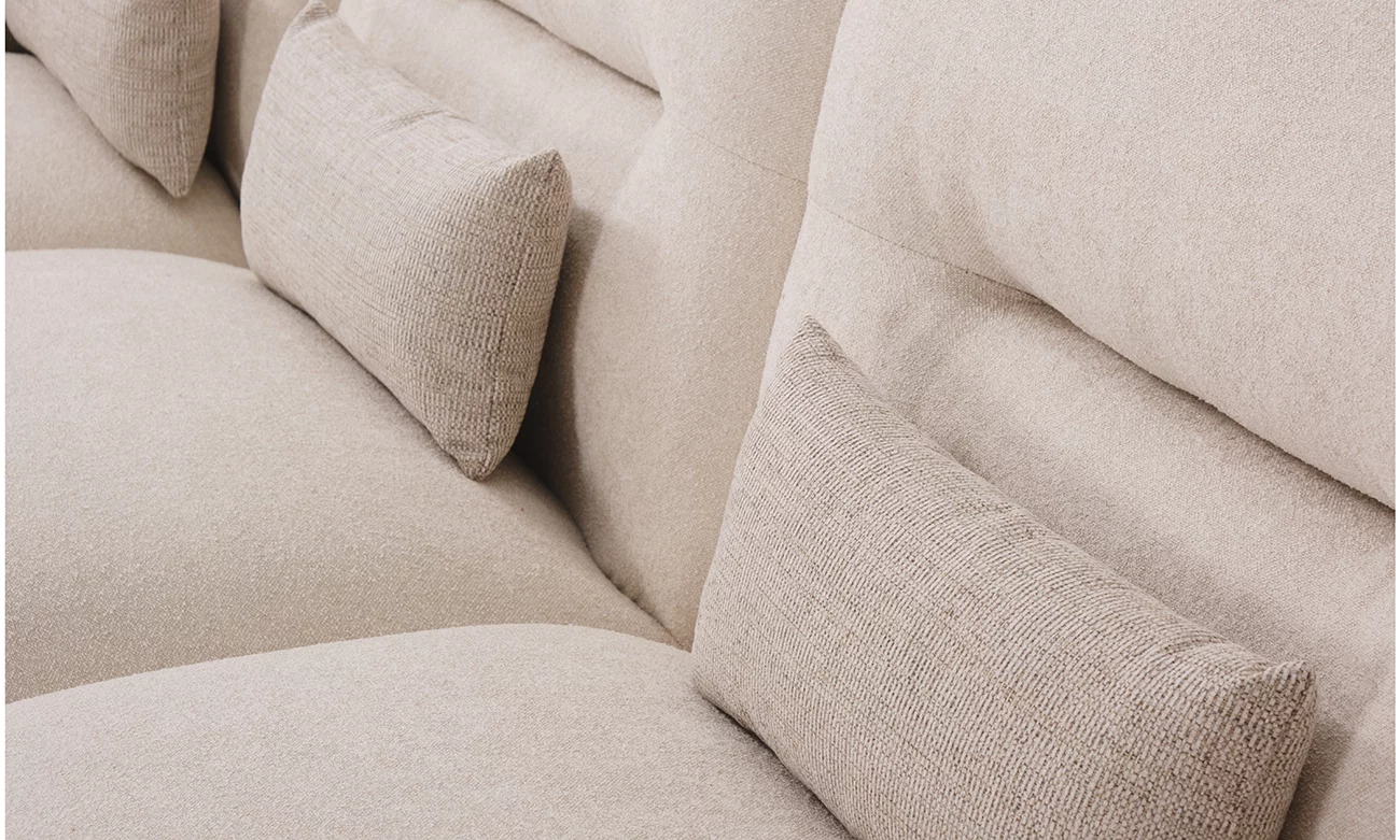 Le salon en U Otto PM d’ErraouiDecor se distingue par son design audacieux, mariant robustesse et raffinement. Sa structure en bois massif, renforcée par des sangles élastiques entrecroisées, assure une durabilité exceptionnelle et un maintien irréprochable. Le rembourrage de haute qualité, composé de mousse HR35, HR30 et Visco, offre un parfait équilibre entre souplesse et soutien optimal. Recouvert d’une bouclette douce et élégante, le Otto PM ajoute une touche de modernité à votre intérieur, transformant votre espace de vie en un lieu à la fois accueillant et sophistiqué.