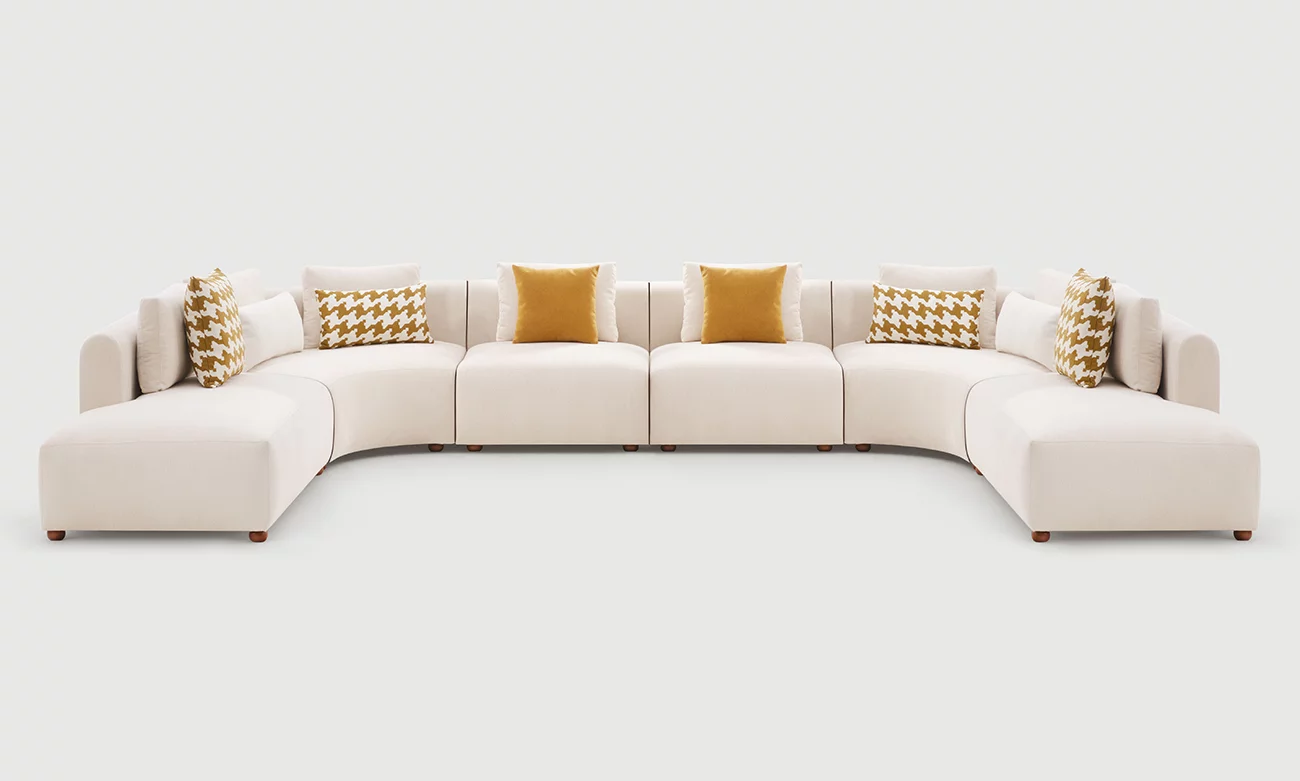 Le salon en U Sofie MM d’ErraouiDecor incarne l’excellence en matière de confort et de qualité. Sa structure en bois massif, associée à des sangles élastiques entrecroisées, garantit un soutien exceptionnel et une assise ergonomique. Doté d’un rembourrage en ressorts ensachés et en mousse HR, complété par une mousse de densité 33, il offre un confort optimal et durable. Chaque détail du Sofie MM est soigneusement conçu pour offrir une expérience de détente inégalée, faisant de ce salon le choix idéal pour ceux qui recherchent une combinaison parfaite de raffinement et de bien-être.