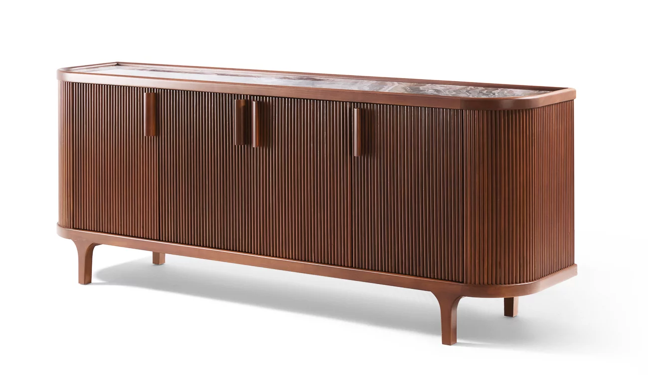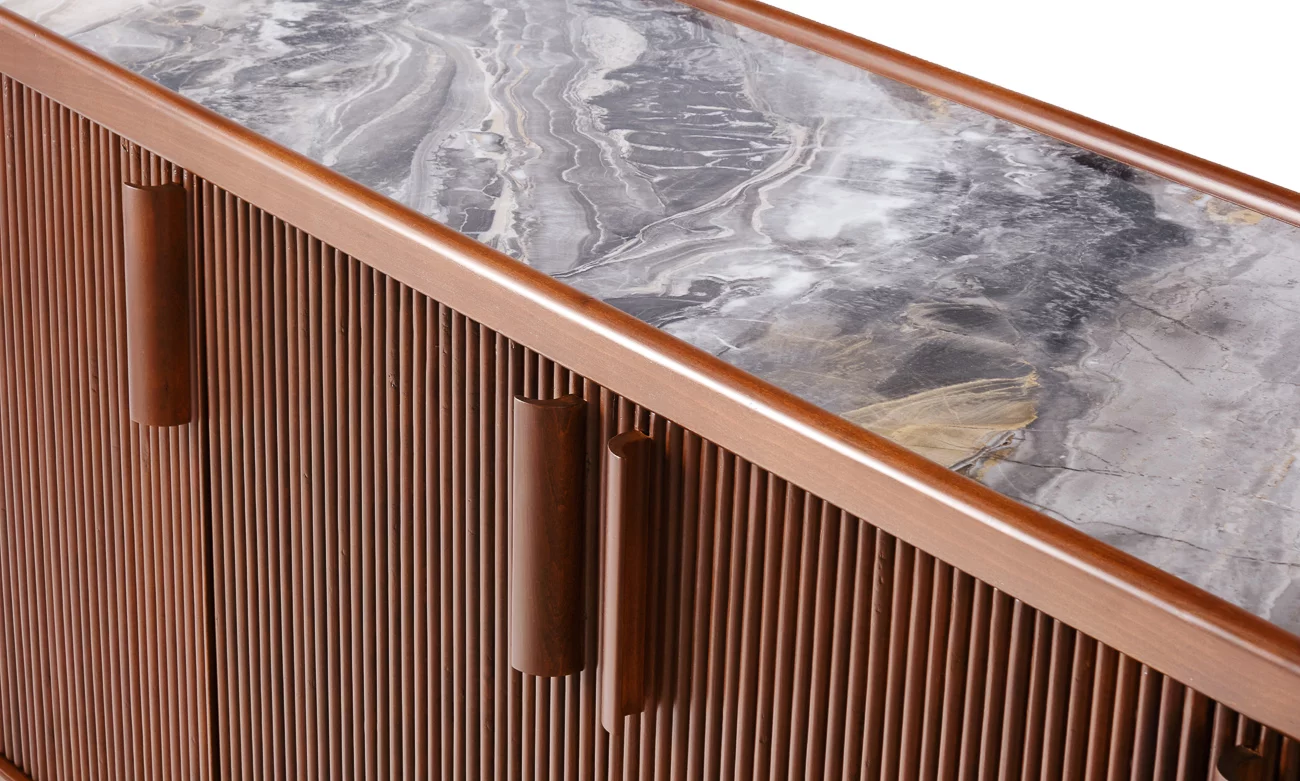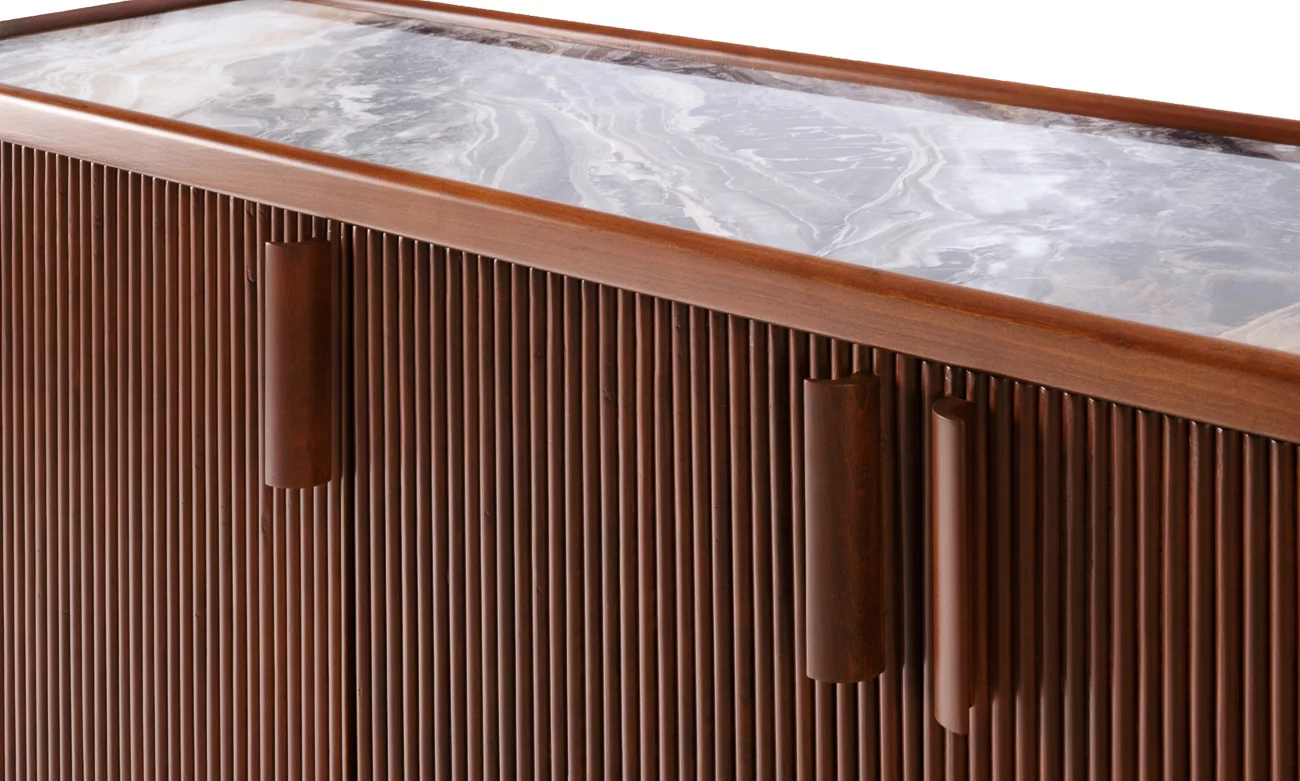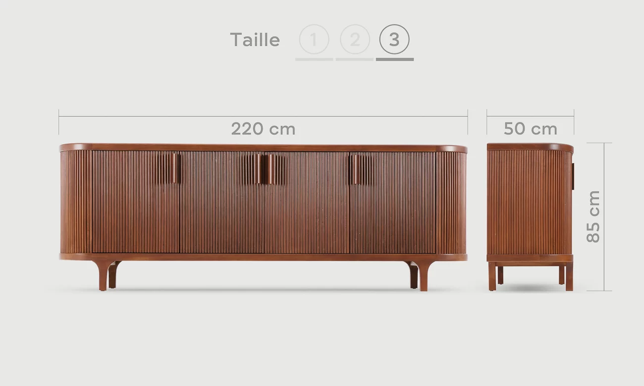 Le Buffet Sorento incarne l’harmonie parfaite entre design raffiné et robustesse. Son caisson en bois plaqué noyer, sublimé par un bardage en hêtre massif teinté noyer, reflète une esthétique intemporelle et chaleureuse.