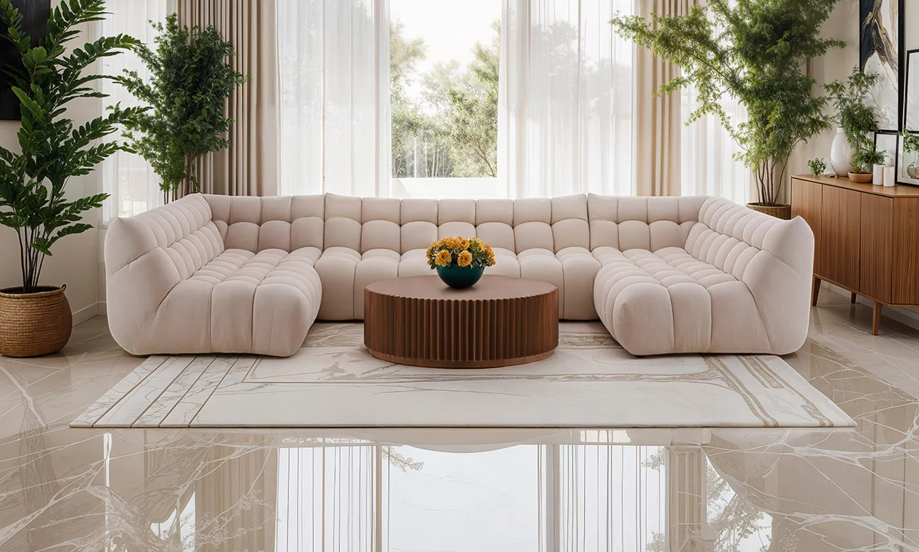 Le salon en U Venus signé ErraouiDecor est une véritable ode au confort et à la robustesse. Conçu avec une structure en bois massif, il marie esthétique et durabilité. Ses sangles élastiques entrecroisées offrent une assise ferme et une flexibilité optimale. Le rembourrage en mousse haute résilience, enrichi par des couches de Magic 4 et Visco Plus D22, procure un confort enveloppant, parfait pour vos moments de détente. Enfin, l’ajout de ouate accentue cette sensation d’accueil, transformant chaque instant passé dans le salon Venus en une expérience de bien-être unique.